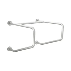 Porque ofrece doble soporte sin comprometer el diseño del baño. Su instalación sólida desde la pared hasta el piso proporciona una sujeción reforzada, mientras que su acabado satinado eleva el estilo del entorno. Esta barra no es solo una herramienta de apoyo: es una solución segura y elegante para mejorar la accesibilidad sin sacrificar la armonía visual.