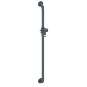 Barra de soporte de ducha vertical HEWI 477.33B110 en color gris antracita, con diseño funcional, elegante y seguro. Incluye soporte para regadera con ajuste de altura y ángulo continuo, ideal para baños accesibles y de alta durabilidad.