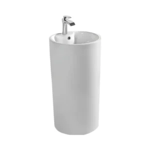 Este lavamanos redefine la estética del baño con su diseño cilíndrico y pedestal, ofreciendo un estilo contemporáneo sin perder practicidad. Su instalación fija al piso aporta seguridad y estabilidad, mientras que su acabado cerámico blanco mantiene su apariencia impecable con el mínimo esfuerzo.