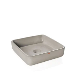 Este lavamanos cuadrado sin rebose de la línea FLADD03 de Konkretus combina diseño moderno y funcionalidad con un acabado artesanal en concreto color Gris Lluvia. Ideal para baños que buscan un estilo minimalista y contemporáneo.