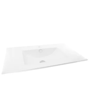 El lavamanos Laum de diseño rectangular y montaje semiempotrado combina funcionalidad y estilo moderno con un acabado cerámico blanco que realza cualquier baño, brindando una solución práctica y elegante.